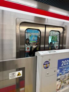 地下鉄の電車に迷い慌てて乗り込む副店長の後を追うも無常にもドアが閉まってしまう🤣