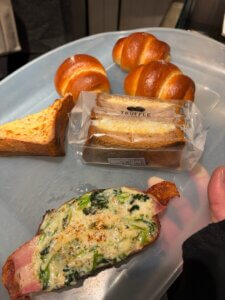 塩トリュフパンと惣菜パンを家族でシェアして
