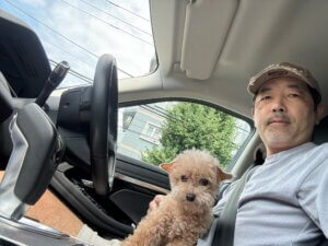 いつものドックサロンにサマーカットに行くのも暑さで大変でやすからね、おやっさんに🚙で連れていってもらいやした。